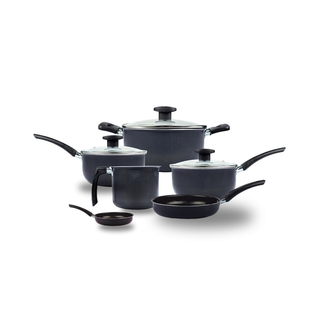 Conjunto Caçarola + Panelas com cabo + frigideira + caneco + Brinde Surpresa (Preto).