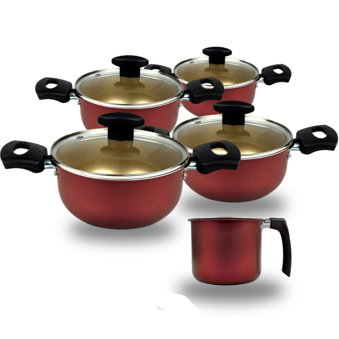 Jogo De Panelas Caçarola 16 à 22 + Canecão n°14 Cereja e Bege Antiaderente.